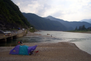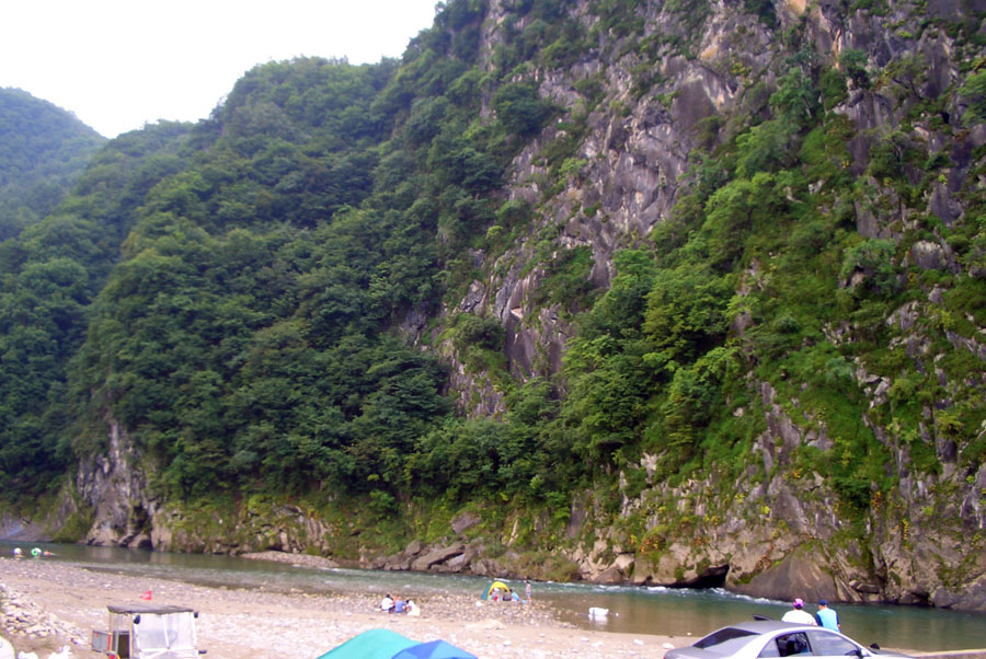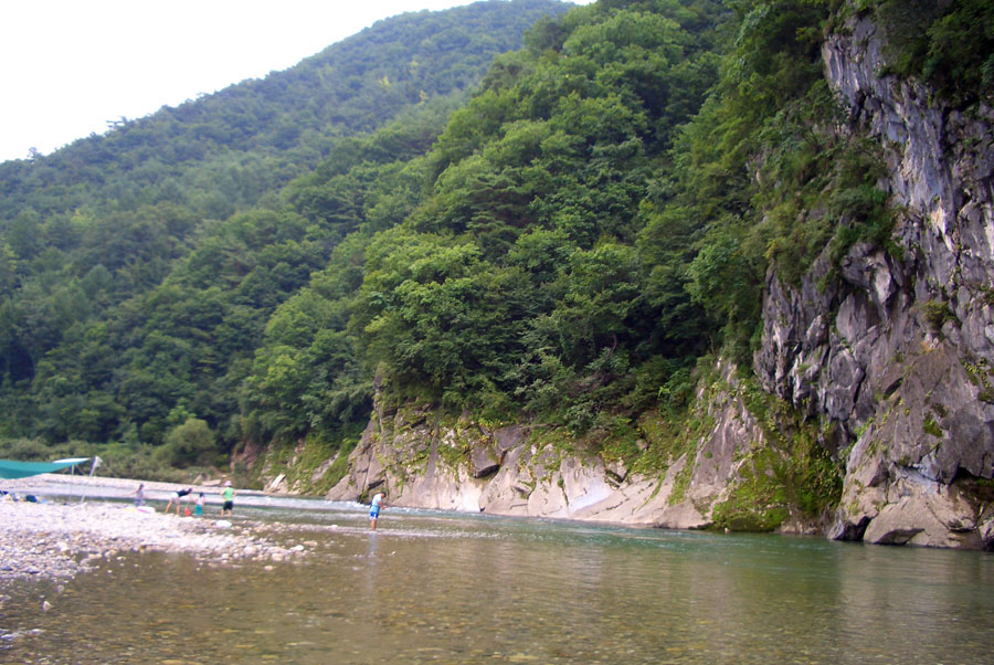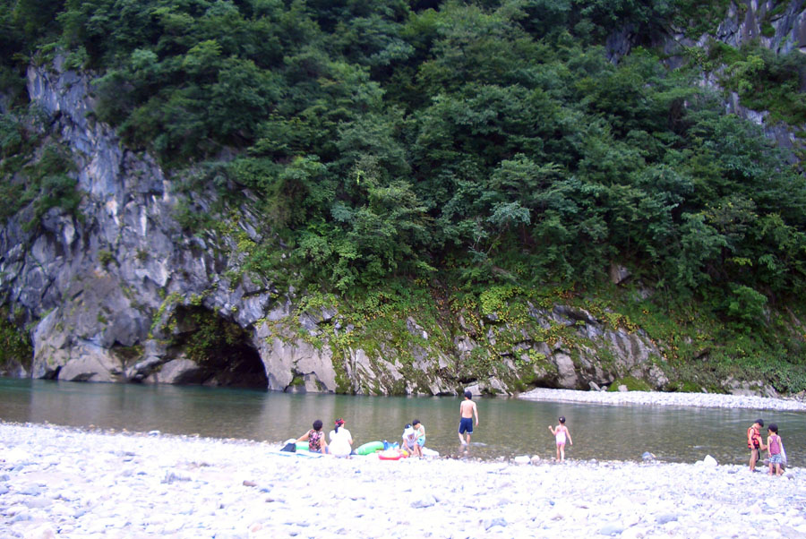 | 정오에도 절벽을 이룬 산 아래여서 하루종일 그늘에서 놀 수 있는 곳입니다. |