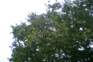 | 밤들이 탑스럽게 주렁주렁 달려 있는디... 아직 입을 꼭다물고 있읍니다. |