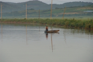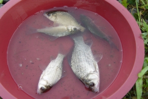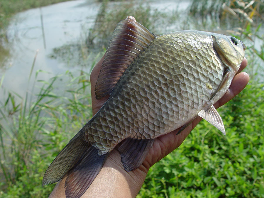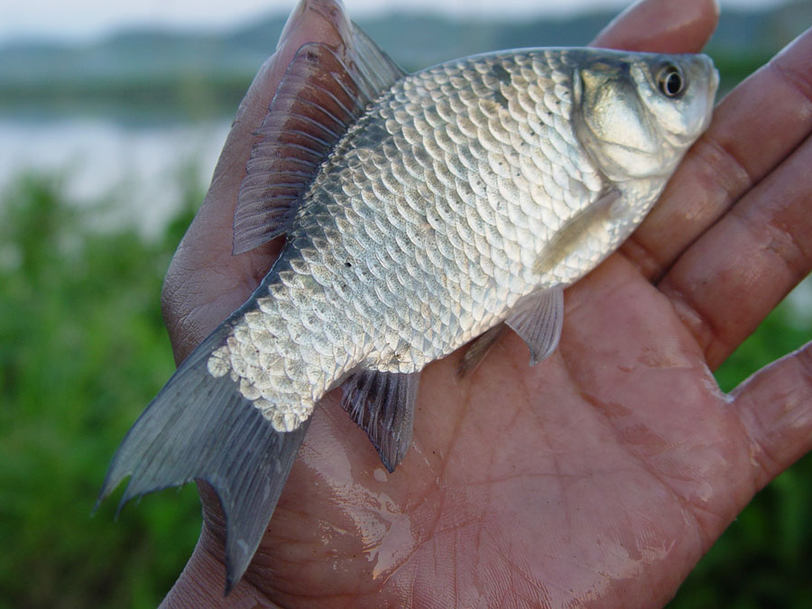 | 아침에 그물을 걷는데 붕어 한마리 들어 왔다고 하네요. |