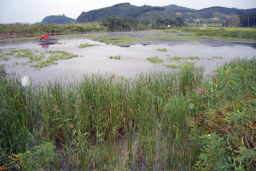 | 마름과 부들 그리고 뗏짱수초들이 어울려 있는 유포리 수로입니다. |