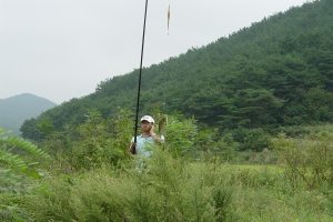 | 부들 사이를 수초채비를 이용해서 낚시를 하는 쌍칼잽이님입니다. |