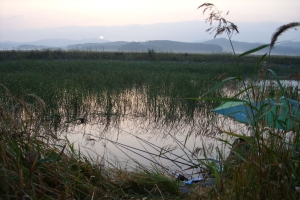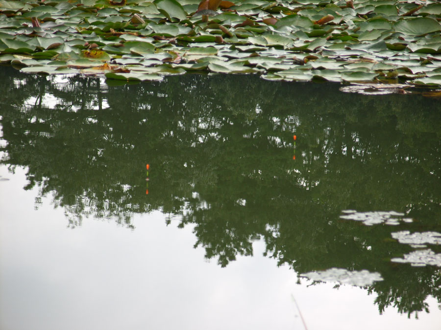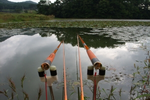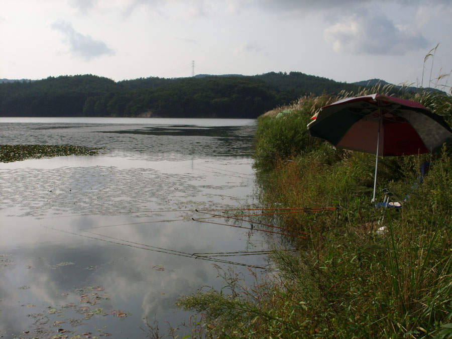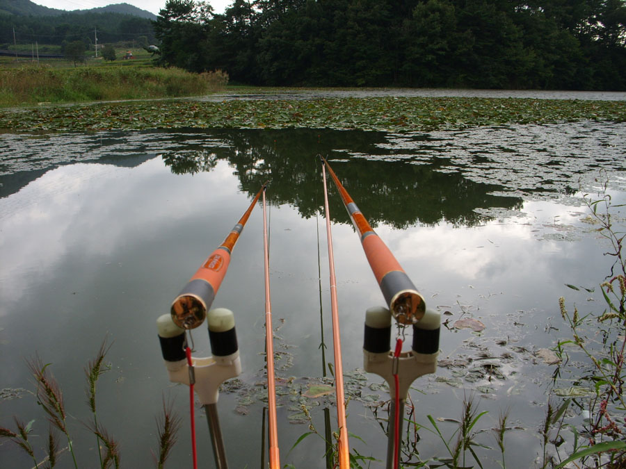 | 날은 밝았는데 부람스님은 없고 낚싯대만... |