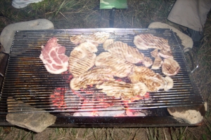 미수조사님이 가져온 불판과 목삼겹살입니다. |