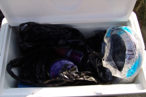 먹거리가 많다구 해서리 몰래 훔쳐 먹을라구... 아이스박스를 열어 보았더니... |