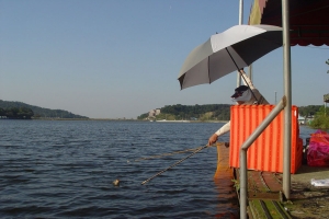 햇볕과 맞서가며 손맛을 보시는 중입니다. |