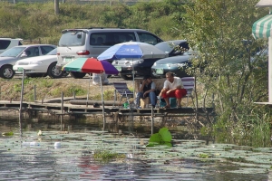 | 제방 좌측으로 배치된 좌대들 |