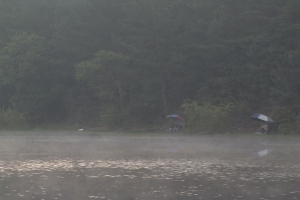 물안개가 피어오르는 산밑 전경 |