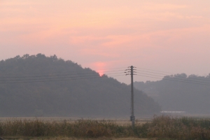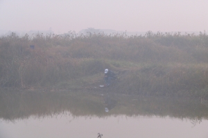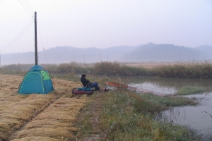 | 필자의 낚시자리 - 밤새 안개가 오락가락했습니다. |