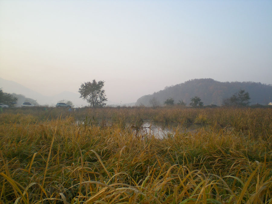 | 저수지 전역이 버들로 꽉차있습니다. |
