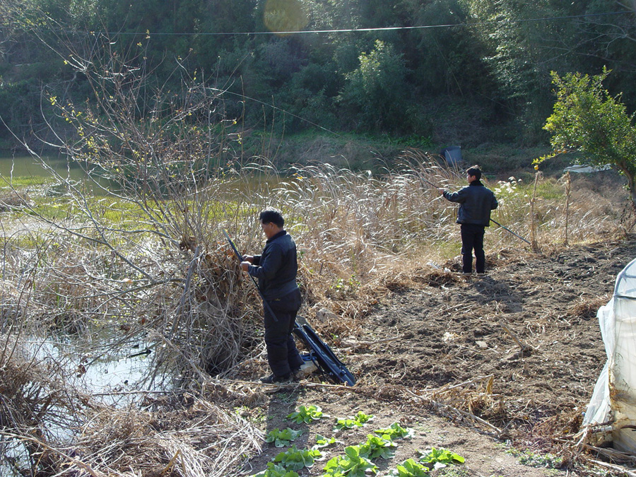 상류권에서 수초낚시를 준비하는 취재팀 입니다 |