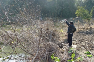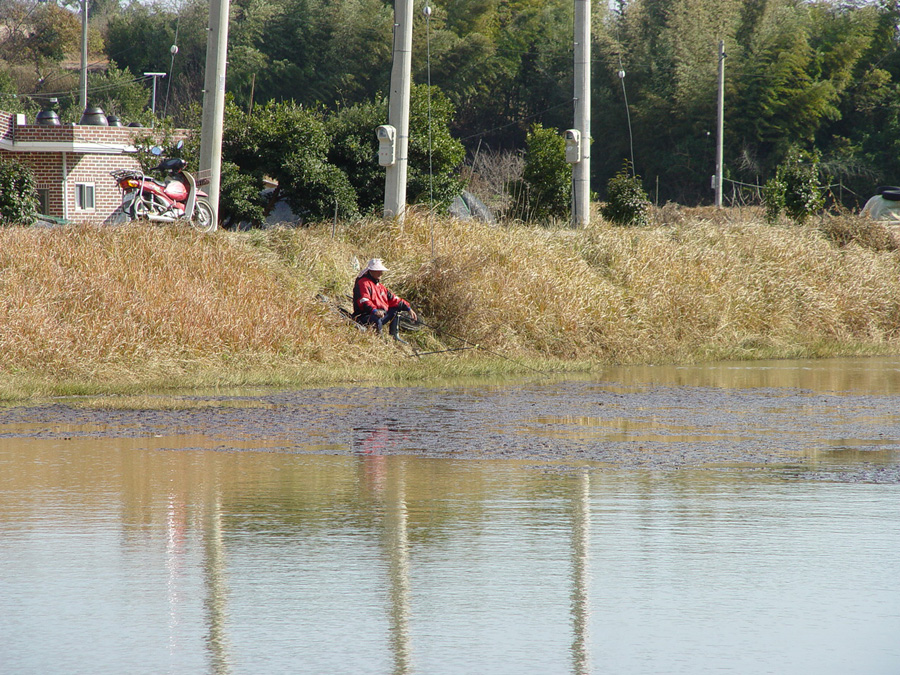 | 이곳에서 35센티짜리 월척도 걸어 내었다는 현지조사의 낚시 모습 |