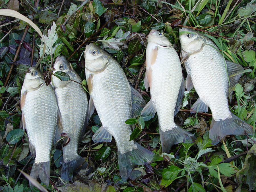 수초낚시로 걸어 낸 소류지 붕어들 중 쓸만한 놈만 골랐습니다 |