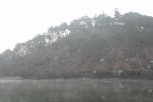 | 산속에 웬 파란 거시기 들이 전통주 내리는 것이랍니다. |