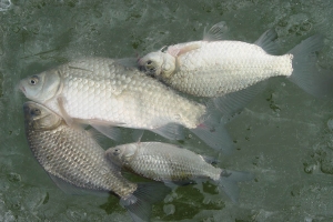 봉봉님의 얼음살림망속 붕어들의 모습 |