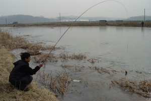| 입질이 오는지 봉봉님의 챔질 준비자세가 멋져 보입니다 |