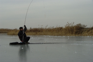 | 드디어 구찌님이 붕어를 걸어 내었습니다 (처음 봅니다 구찌님이 얼음낚시에 붕어잡는것을^^) |