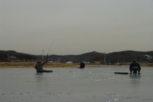 | 서산낙조팀 입작은붕어님의 얼음낚시 모습 |