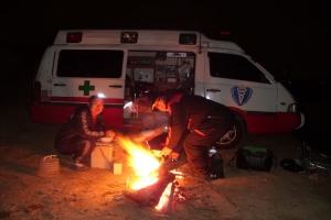 | 버려진 나무가지를 주워서 모닥불을~~ |