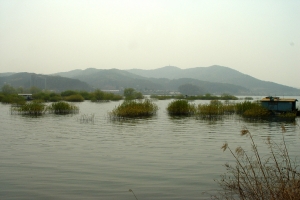 송전저수지 제방에서 상류를 바라보고 우측 중하류권 골자리 모습 |