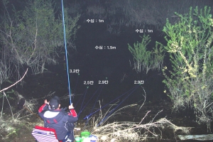 2.5칸대 수심1.5m 10시 반경 첫 조과 (잉어 70cm급), 3.2칸대 수심 1m권 11시경 33cm급 첫 월척 |