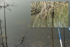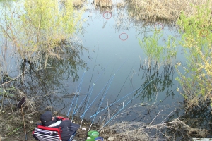 | 오후시간 잠시 들려 점찍어 놓은 포인트 (동그라미 안에 버드나무 줄기만 제거하면 낚시하기 좋겠죠!) |