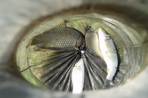 취재팀의 살림망을 봅니다 (첫 충주호 출조에서 붕어 얼굴을 보았습니다.^^) |