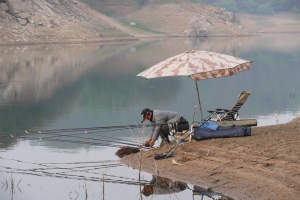 봉봉님이 아침 입질을 기대하면서 낚시를 해 봅니다. |