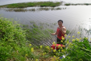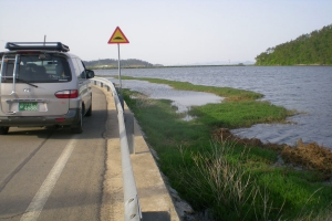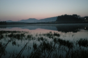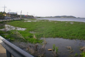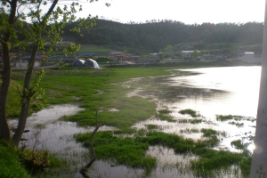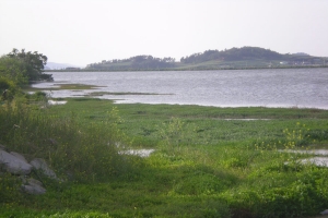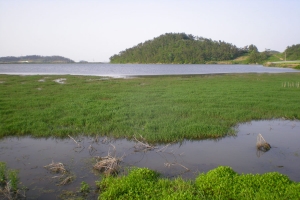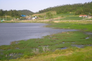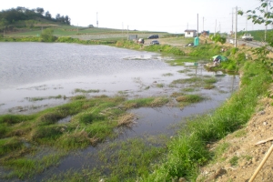 저수지 좌안쪽으로 상류에서 하류까지 뗏장들이 잘 형성되어 있읍니다. |