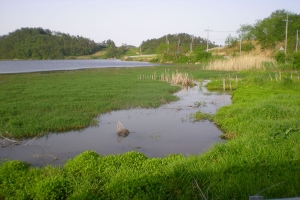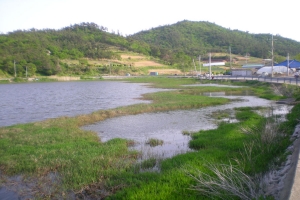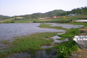 | 저수지 좌안쪽으로 상류에서 하류까지 뗏장들이 잘 형성되어 있읍니다. |