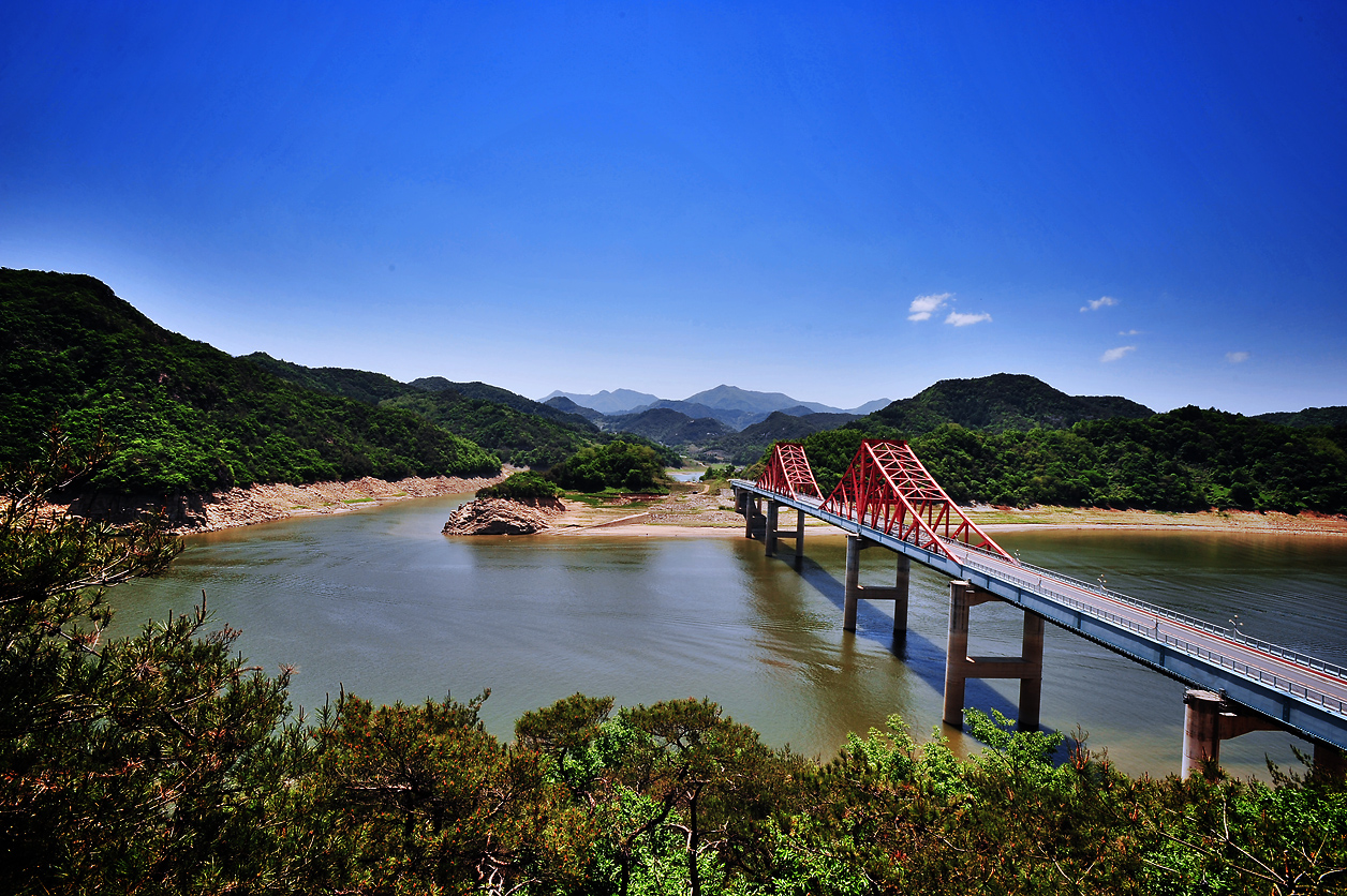 | 옥순대교 끝자락의 정자에 올라 촬영했습니다. |