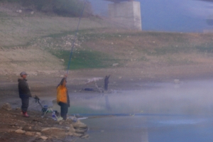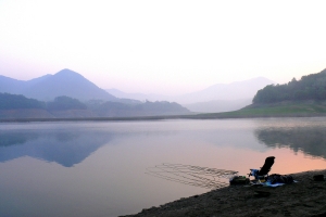 상류권에서 아침낚시를 하는 조사의 모습입니다. |