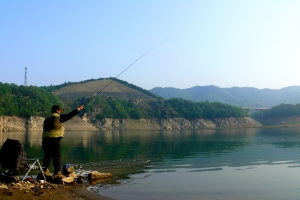 | 상류권에서 아침낚시를 하는 조사의 모습입니다. |