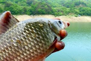 | 강력한 힘을 자랑하는 파로호 8치급 토종붕어입니다. |