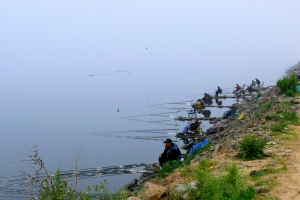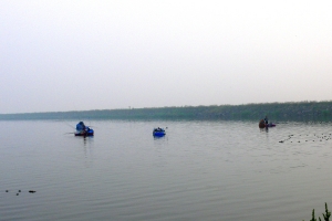 | 보트낚시를 즐기는 조사들도 아침입질을 받기 위해 준비 중입니다. |