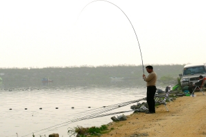 | 엄청난 대물을 걸었는지 대가 활처럼 휘어졌습니다. |