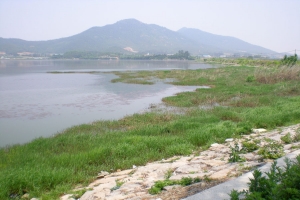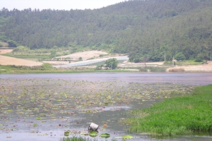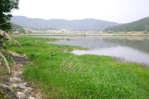 | 석호지에 도착을 했습니다... 제방권입니다. |