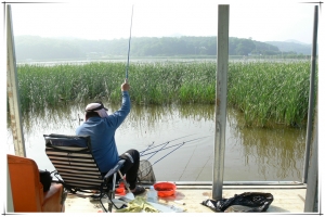 | 관리실에서 제방 우측권에 위치한 수상좌대 |