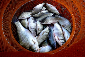 취재진의 조과가 든 살림망입니다. |
