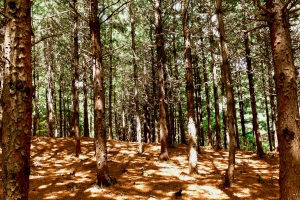 울창한 나무숲에는 텐트치고 야영하기가 딱 좋습니다. |