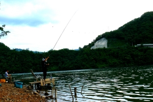 포인트의 이동으로 깊은 수심을 보여주는 의암댐 거북이낚시터 전경 |