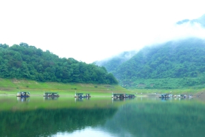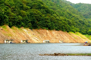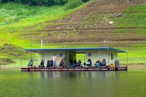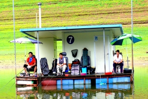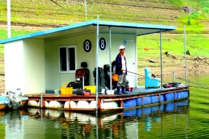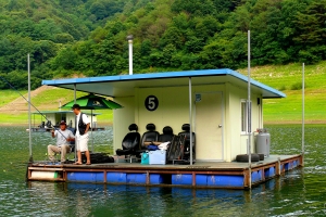 | 말골낚시터 중하류권에 배치되어 있는 수상좌대 전경 |
