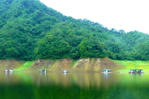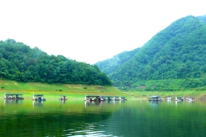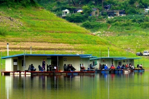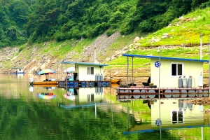 말골낚시터 중하류권에 배치되어 있는 수상좌대 전경 |