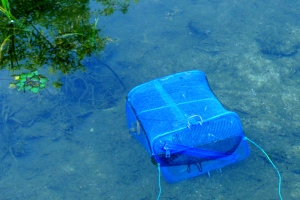 아마 붕어들이 바위 밑에 숨어서 움직이지 않는 것 같습니다. |