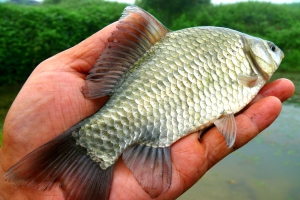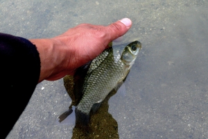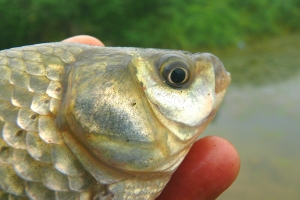 어렵게 잡은 붕어의 얼굴을 자세히 봅니다. |