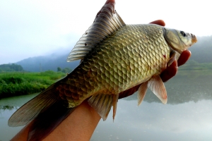 멋지게 생긴 청산보 8치급 붕어의 모습입니다. |
