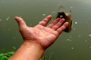 | 한번의 기막힌 입질을 챔질해 보니 실망스럽게 이놈입니다. |