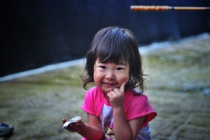 필자의 딸래미가 붕어들고 포즈를 취해 줍니다.^^ |