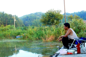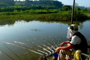 | 가장 좋은 조황을 보여준 상류권 수초대에 대편성을 한 조사의 모습 |