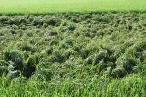 | 바람에 쓰러진 벼... 어렵게 묶어 놓았습니다. |