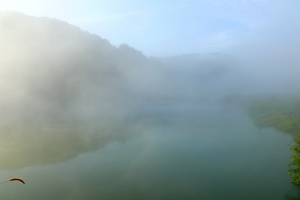 새벽녘에 물안개가 장관을 보여줍니다. |